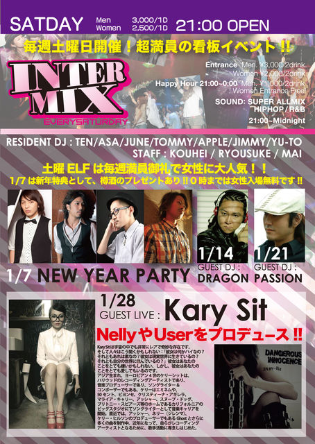 1月7日土曜日のCLUB ELFはELF INTER MIX NEW YEAR PARTYです!!