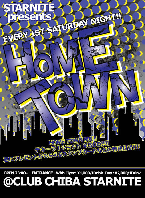 新年明けましておめでとうございます!! 本年度もSTARNITEを宜しくお願い致します。 イベントの告知を失礼致します。 2012年一発目!! STARNITEの第一土曜日のビッグパーティー"HOME TOWN"開催!! お正月企画盛りだくさんの新春スペシャルです!! 2012.1.7(SAT) STARNITE presents EVERY 1ST SATURDAY NIGHT!! HOMETOWN -おけおめ2012SPECIAL!!- @CLUB CHIBA STARNITE DJ: TAKA(STARNITE RECORDS)/KAY(GENESIS SOUND)/U.M.E(STARNITE RECORDS)/DJ Rook(4th GENESIS)/DJ HIKARU(3rd GENESIS)/DJ YUICHI(4th GENESIS) LIVE: G:O