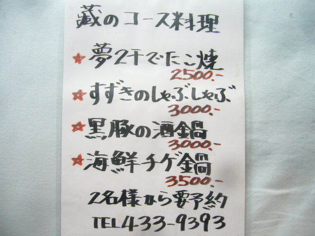 さるぶろボーネンカイ@お好み焼き げんべえ には猿風呂族のみなさん多数お集り頂き, 誠にありがとうございました 年明けにも恒例のNewYearDeep深淵会を開催致します。 場所 手打ちうどん蔵 (船橋市湊町1−1−11☆047−433−9393) 時間 夕方18:00から〜 会費 5,000円くらい(飲み助は多めに払ってネ♪) たこ焼き すずきのしゃぶしゃぶ コース内容(三点盛前菜、お刺身盛合わせ、鴨のタタキ、サラダ、アサリバター、カルパッチョ、〆のうどん) お申し込みはサルブロ店頭マスターまで!(残席わずかデス
