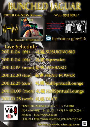 BUNCHED JAGUAR¤È¤â¿Æ¸ò¿¼¤¤SOULA¤ÎÌÚ²¼À¿¤È¥Ê¥¿¥ê¡¼¤¬¡¢ º£½Õ¡¢»¥ËÚ¤«¤éÅìµþ¤ØµòÅÀ¤ò°Ü¤·¤Þ¤¹¡£ ³§¤Ç²÷¤¯Á÷¤ê½Ð¤·¤Æ¤¢¤²¤è¤¦¢ö [SOULApresents"ÁûÍðº×"] PLACE¡§Hall SpiritualLounge (S2W4 Large Countory BLD B1F) open18:00start 18:20 ticket ¡ï1000(ÊÌÅÓ1drink¡ï500) ACT¡§BLACK HAIR¡¦¥¢¥¤¥í¥Ë¡¼¼çµÁ BUNCHED JAGUAR¡¦ÆóËçÀå TENNESEE NASH DYNE¡¦SOULA ¥Á¥±¥Ã¥ÈͽÌó¤Ï¥³¥Á¥é¢ info@bunchedjaguar.com (¼è¤êÃÖ¤orÁ°Çä¤ê¤ò¤´»ØÄ꤯¤À¤µ¤¤) Ëô¥³¥Á¥é¤Î¥¤¥Ù¥ó¥È¤Ø¤Î½ñ¤¹þ¤ß¤Ç¤â²Äǽ¤Ç