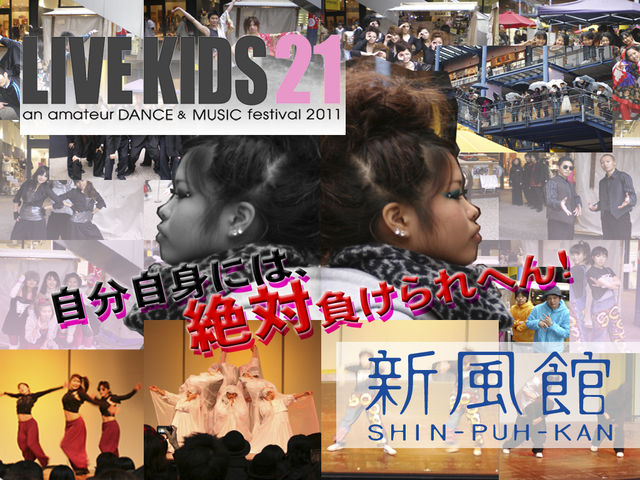 LIVE KIDS vol.22〜アマチュアダンス&ミュージックフェスタ2012〜 アマチュアダンサー募集!! 応募資格: ○メンバー全員が中学生以上30歳以下で、2名以上のチーム。 ○中高生エントリーはメンバー全員が高校生以下、その他は一般。 ○ジャンルは不問。 ※プロの方はご遠慮ください。 応募方法: 先着60チーム『LIVE KIDS in 新風館』に出演できます! (2012年1月15日(日)新風館にて) ○出演したい方は、運営事務局まで連絡ください。 ?TEL ?FAX ?E-mail (??については、住所・氏名・電話番号・チーム名をご記入くださ