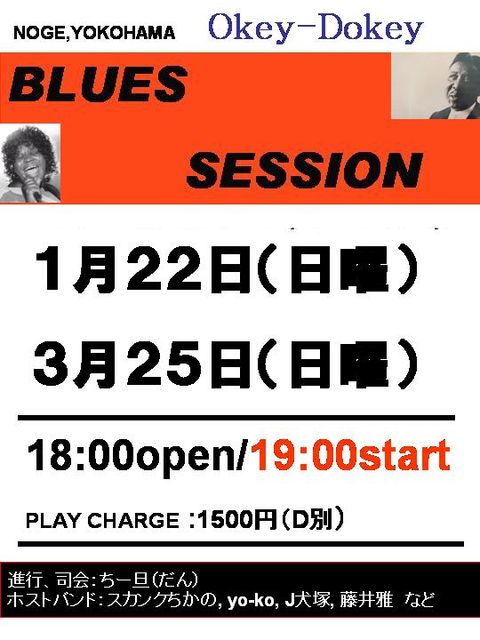 2012年1月22日(日) 18時オープン 19時スタート 参加チャージ 1500円 オーディエンス 1000円 ホストバンドもありますので はじめての個人でも安心して参加して下さい。 ※飲食は別料金です 初めての方も、お気軽にお越し下さい どのパートでもOK 個人参加Ok お連れ様で参加OK =LIVE MUSIC & DINING BAR= 横浜野毛OKEY-DOKEY(J&K BAR) http://www.maroon.dti.ne.jp/okeydokey/ 〒231-0065 横浜市中区宮川町2-55 TKビル3F Tel 045-326-6776 ###############################