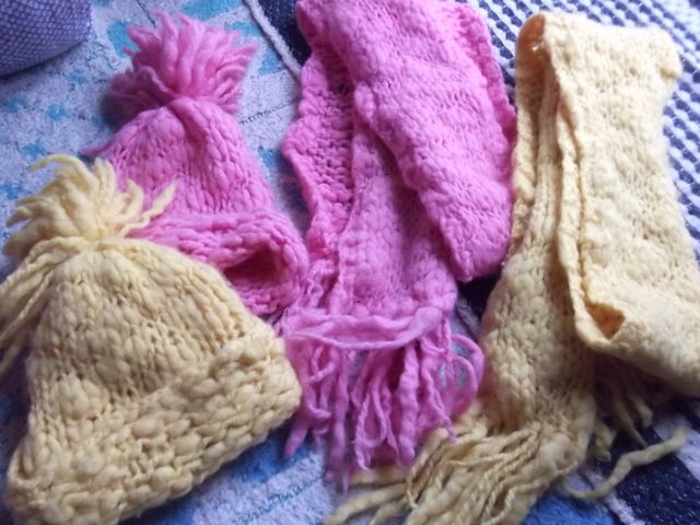 手編みの帽子&マフラー各色【あげます】 一個だけ新品のニット帽もあります。 ちょっと季節遅れになってしまいますが、お正月に従姉妹から 手編みの帽子&マフラーを頂きました。 うちの子にと頂いたのですが、既に持っているしこんなに要らないので もし、使ってくださる方がいらっしゃればぜひ使ってください。 ・我が家では使用しておりませんが、中古品です。 ・コメントにてお願いいたします。 ・送料は負担でお願いいたします。 ・毛糸の素材は不明です。 ・姉妹での色違いペアになっていますがバラでもOKです。 ・子供用なの