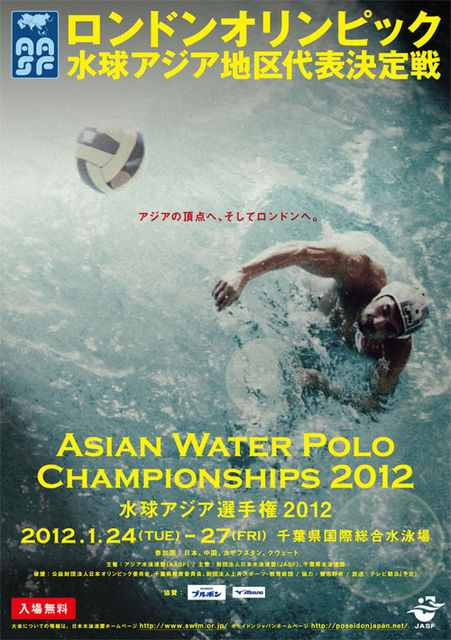 管理人様、書き込み失礼致します。 ロンドンオリンピックの水球アジア代表を決める決戦が 千葉県国際総合水泳場で開催されます。 男女共にアジアから1カ国しか出場できません。 水球日本代表“ポセイドンジャパン”を皆で応援しましょう!!! 男子は昨年の世界水泳で史上初の決勝トーナメント進出を果たしました。 皆さんの力強い声援で、ポセイドンジャパン達を後押しし、 共にロンドンへの切符を勝ち取りましょう!! 入場無料です。 大会までの期間はプールロビーで、 ポセイドンジャパンの応援旗へ皆さんにメッセージを書き込んでいただ