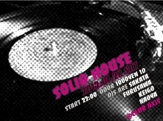 SOLID HOUSE @club AXIS 2012/1/28 Sat Start 22:00 Door 1000yen (1D) Djs are Furusawa Sakata Keigo Naoya 機材は RANE MP2016 & Vestax DCR-1500 Ful Custom を使用予定!