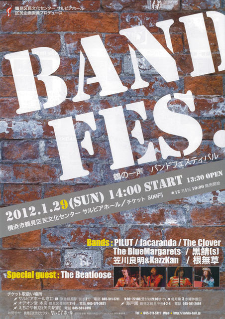 £²£°£±£²Ç¯Âè°ìÃÆ¥é¥¤¥Ö 1·î 29Æü (Æü) ¸µ½»µÈpowers2 (044-455-0007) Charge \1500 OPEN 18:00 / START 19:00 Yamaguchi ¡ÈTark¡É Takuya (Bass) Kasima Miwa(Pf) Jorge Watanabe (Perc.) Totico Otsuka (Perc.) Miyazaki Noriwo (Perc.) Pablo ¡ÈLuky¡É Castillo (Vo) Nicolas Matsuo (Vo) Mano Rintaro(Vo) Hiroya Nakatani(Tp) Ryo Mizote(Tp) Ken Saito(Tp) Iwan iwanovich¡ÊTb) Ryo Asakura(Tb) Taichi Masuda(Bari.Sax)
