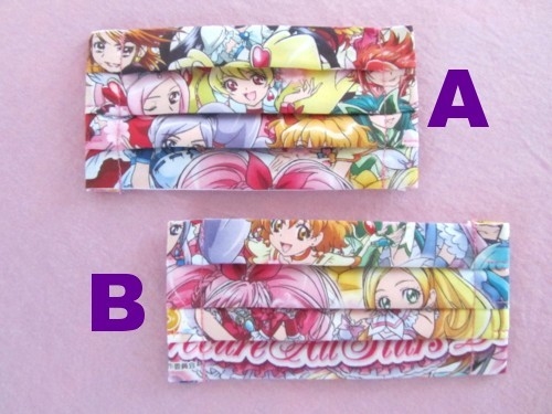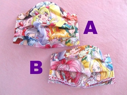お世話になっております。 今回は、プリキュアの立体マスクをもらってくださる方を募集いたします。 以下に品物の詳細や条件等を記載いたしますので、よくお読みの上ご参加くださいませ。 ◇プリキュア立体マスク(子供用) ◇ハンドメイド品 ◇新品、未使用 ◇サイズ(平置き):縦約6.5cm×横約13cm ◇内側:四重ガーゼ仕様 ◇表面:市販のハンカチ 息子のお友達へのプレゼント用に作りましたが、作りすぎてしまいました。 画像のAとB、各1点ずつになりますが、もらってくださる方いらっしゃいますでしょうか? 画像
