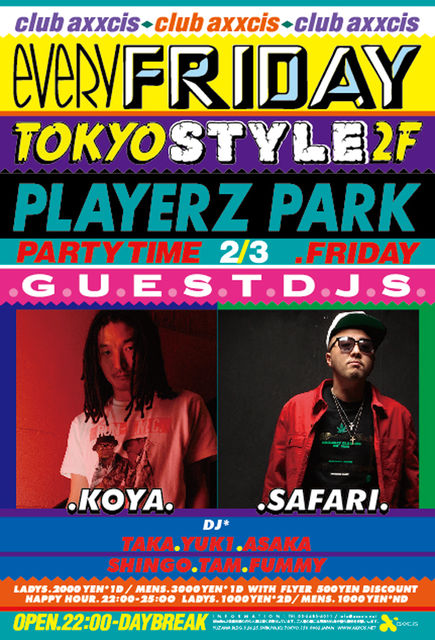 管理人様、告知失礼します!! ※ディスカウント情報※ もしメッセージができない、急に行きたくなった方は アクシスのエントランスにて 「シンゴのゲストでマスター」 と言って頂ければ、何名様でもディスカウントゲストにて入場できます。 以下詳細確認お願いします。 全フロア(2F.3F.4F)行き来自由! 2F「PLAYERZ PARK」 3F「VINTAGE」 4F「」 ーーーーーーーーーーーーーーーーーーーーーーーーーーーーーーーーーーーーーーー 毎回豪華なPARTYで人気の高い渋谷AXXCIS 週末は 今回2階「PLAYERZ PARK」ではDJ KO