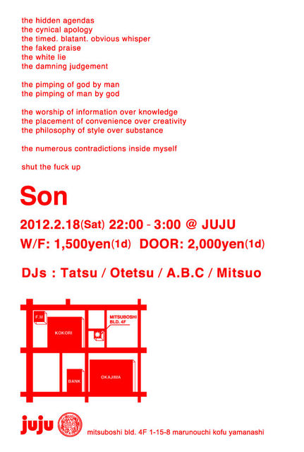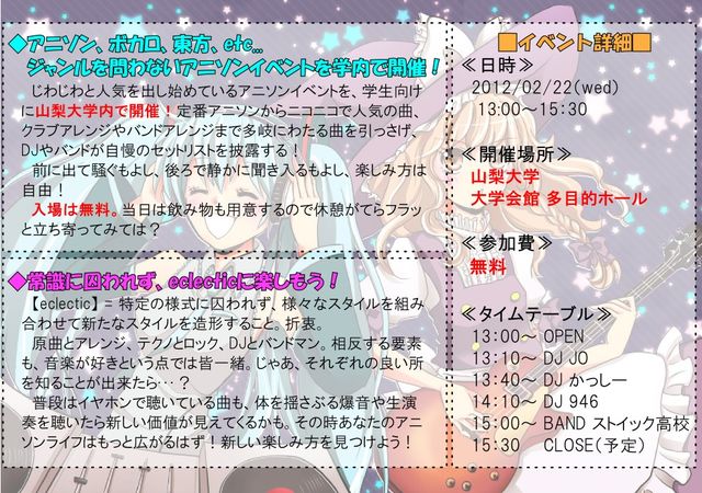 テクノミュージックを中心に、主に東京と山梨で活躍しているDJを招待し一夜を作り上げる新しい形のパーティです!!