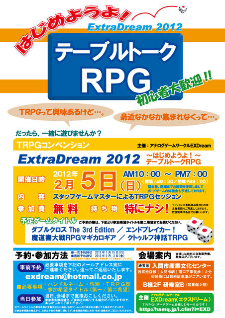 ¥¢¥Ê¥í¥°¥²¡¼¥à¥µ¡¼¥¯¥ë¡Ö¥¨¥¯¥¹¥É¥ê¡¼¥à¡×¤Î¾ÂÃϤμó¡Ê¤Ì¤Þ¤¯¤Ó¡Ë¤È¿½¤·¤Þ¤¹¡£ £²·î£µÆü¡ÊÆü¡Ë¤Ë[»²²ÃÈñ̵ÎÁ]¤Î£Ô£Ò£Ð£Ç¥³¥ó¥Ù¥ó¥·¥ç¥ó¤ò³«ºÅ¤¹¤ë¤Î¤Ç¹ðÃΤµ¤»¤Æ¤¤¤¿¤À¤¤Þ¤¹¡£ º£²ó¤Î¥³¥ó¥Ù¥ó¥·¥ç¥ó¤Ç¤Ï¡¢¡Ö½é¿´¼Ô¡×¤ÎÊý¤ä¡ÖÍ·¤Öµ¡²ñ¤¬¤Ê¤¤¡×¤È¤¤¤¦Êý¤Ëµ¤·Ú¤Ë»²²Ã¤·¤Æ¤¤¤¿¤À¤³¤¦¤È¡¢ ¡Ö̵ÎÁ¡×¡Ö¥¹¥¿¥Ã¥Õ£Ç£Í¡×¡Ö¥À¥¤¥¹¡¦É®µÍѶñ¤¢¤ê¡×¤È¤¤¤¦·Á¤ò¤È¤ê[¼ê¤Ö¤é¤ÇÍ·¤Ó¤Ë¤³¤ì¤ë¥³¥ó¥Ù¥ó¥·¥ç¥ó]¤È ¤µ¤»¤Æ¤¤¤¿¤À¤¤Þ¤·¤¿¡£¢¨Ãë¿©¤ä°ûÎÁ¤Ê¤É¤Ï¤´¼«¿È¤Ç¤ª´ê¤¤¤·¤Þ¤¹m(__)m ¤¼¤Ò¤ªµ¤·Ú¤Ë¤´»²²Ã¤¯¤À¤µ¤¤¡£ Æü»þ¡§£²£°£±£²Ç¯£²·î£µÆü¡ÊÆü¡Ë£±£°:£°£°¡Á
