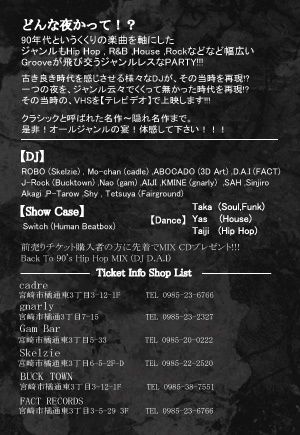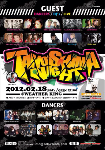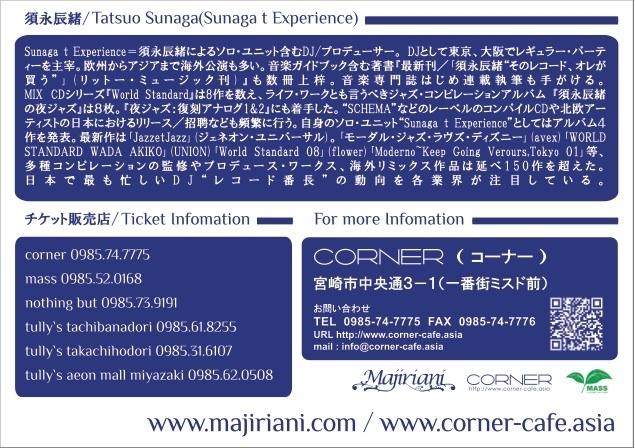 ticket : adv:2500yen with 2drinks At door:3000yen with 2drinks