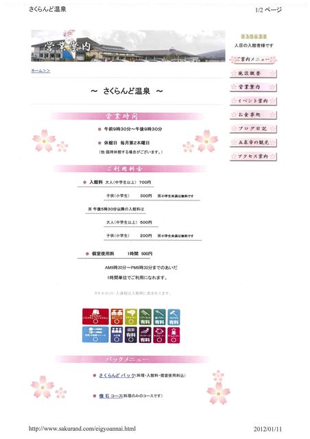 皆さま 新年明けましておめでとうございます。 気温が低い日々の中いかがお過ごしでしょうか 寒い寒いと言ってても前に進みません、今年の薪調達・ストーブの話などなど 皆さんと熱く語りたいと思っております。 是非多数の参加お待ちしております。 日時 平成24年2月11日 土曜日 場所 さくらんど温泉 五泉市上木越甲423番地 0250-58-1611 集合 午前10時 入館料 大人(中学生以上) 700円 子供(小学生) 300円 小学生以下は無料です ** 参加希望の方は個々に入館料をお支払いをお願
