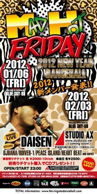 @STUDIO AX 前売り\2000/1D 当日 \2500 前売りチケット購入でMAD HOT FRIDAY ORIGINAL SE LECT CDプレゼント!!