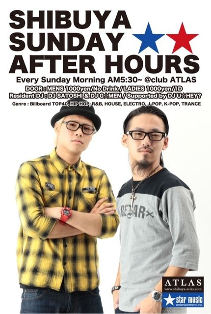 渋谷道玄坂の新店舗club ATLASにて毎週日曜日早朝5時30分より開催。