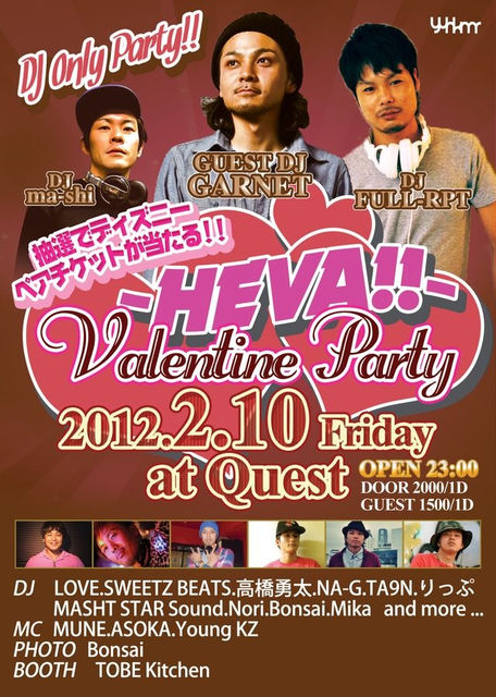 管理人様失礼しますexclamation お待たせしました〜グッド(上向き矢印) 豪華メンバーでバレンタイン直前 パーティー開催しますexclamation 抽選でディズニーチケットも当たりますグッド(上向き矢印) 女性はばっちり踊りたいコはもちろん!彼氏いないコをたくさん誘って来て下さいexclamation ×2 前回クリスマスパーティーを開催して好評だったイベントの第2弾グッド(上向き矢印) 今回は・・・ DJ Only Partyグッド(上向き矢印)exclamation ×2 カップリング企画ありるんるん 抽選でディズニーペアチケットが当たるグッド(上向き矢印)グッド(上向き矢印)グッド(上向き矢印)グッド(上向き矢印) 入り口で受取ったカードで運命が変わる