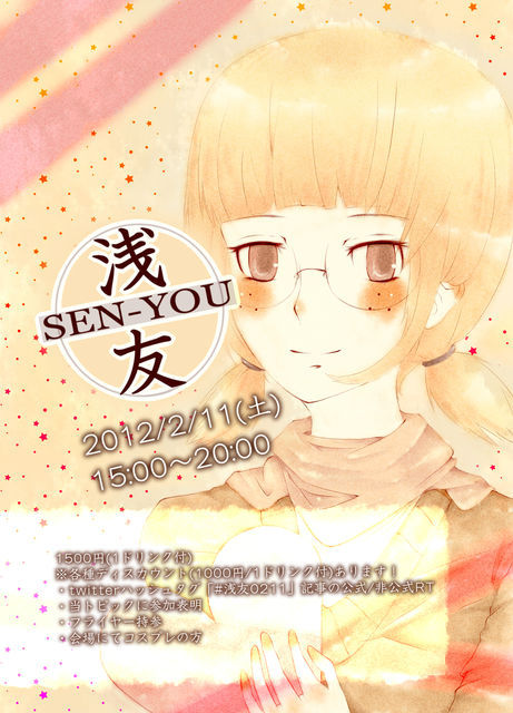 ※タイムテーブル公開しました※ 浅草を代表する総合アニソンイベント「浅友」!! 皆様の熱い声援をいただき、日々進化を遂げております。 イベント自体はA-POP原曲が主のパーティーです! テキーラも振舞いますので、ぜひ、お気軽にお越しください! 一緒に、騒ぎ、飲みましょう! 【浅友〜NO TEQUILA NO LIFE〜 vol.18】 [入場] 1500円(1ドリンク付) ※各種ディスカウント(1000円/1ドリンク付)あります! ・Twitterタグ「#浅友0211」記事のRT/公式RT ・当トピックに参加表明 ・フライヤー持参 ・会場にてコスプレの方 【GEO