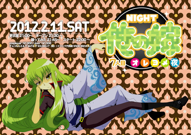 和歌山発アニソンコスプレイベント、俺嫁夜☆アニソンはもちろんボカロに東方、ニコ動MADにJ−POP、ゲーソン、BL曲などが大音量できけます!!おかげさまで毎回大盛況!俺嫁夜☆は今回で7人目だ!!2012年、初俺嫁夜☆には、フェロモン&BL臭をまき散らすイケメンDJshow坊やが参戦決定だ!! 前回、女子だけではなく!男子までも踊り狂わせたイケメンDJにご期待あれ! 俺嫁夜☆7人目はコスプレでお越しの方は\500‐割引きしちゃいます!【一般\1,500(別途1D\500‐)】2月はバレンタイン!またもや「チョコもらえる!?あげる!?」カ