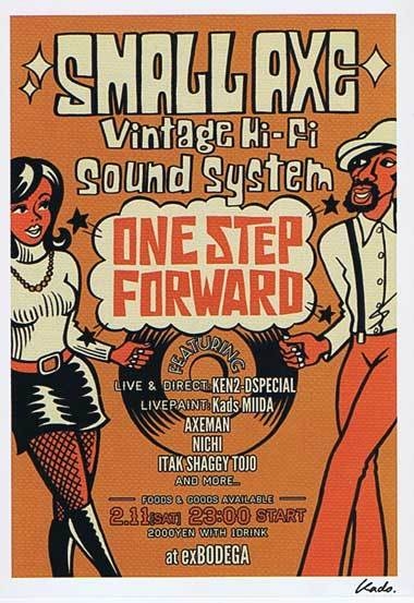管理人様告知失礼します。 〜SMALL AXE VINTAGE Hi-Fi SOUND SYSTEM 〜 <ONE STEP FORWARD> live&direct KEN2-DSPECIAL livepaint Kads MIIDA AXEMAN http://www.smallaxerecords.com/ NICHI ITAK SHAGGY TOJO and more... foods & goods available 2.11(sat)23:00 start \2000 with 1drink @exBODEGA 横浜市中区福富町仲通4−15国際ビルヂングB1 ありがとう御座います