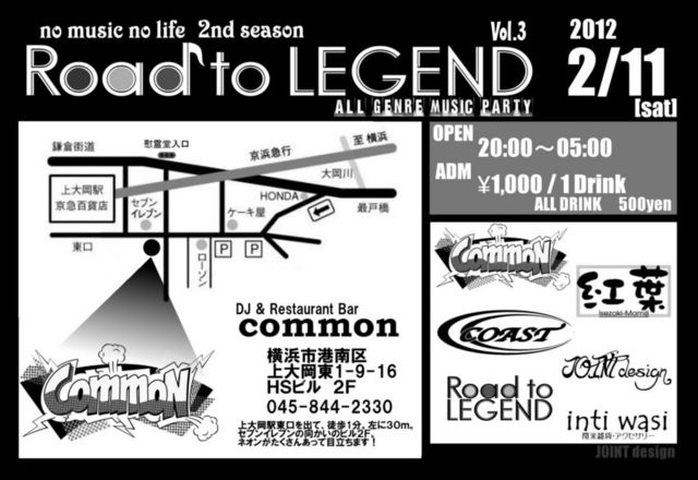 ■2月11日(sat)関内ACTION ―絆 Vol.1― 瀬谷&相武台プロデュース ■関内ACTION(現 NOISE) ■料金♂♀\3000yen GUEST \2500yen TICKET \2000yen ※限定(300枚) 団長のゲストと言って頂ければ ディスカウントになります ■OPEN/CLOSE:0:00〜7:00 ■ALL PSYCHEDELIC ■DJ's YOSHIDANCE (T.P.E.RECODS) 団長 (NOGA RECORDS/K-HOLE) NAO (TRANCE RAVE) NOSE (三十路CREW/BAD SECURITY) MASASHI YU-SUKE (RED@EYE/K.R.D/sky project) ■PARTY PRODUCE 瀬谷&相武台 ◆PLACE
