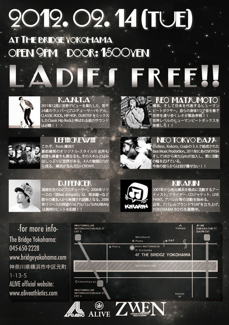 女性 ALL FREE!! そして遊びに来てくれた方全員にZWENの非売品ブレスレットをプレゼントします!! 21時からオープンです! 待ってます!!