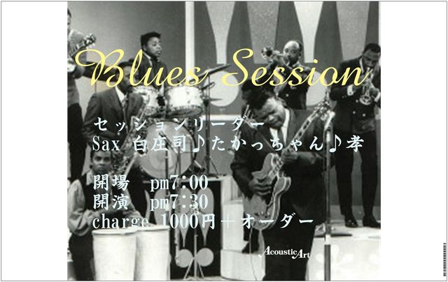 New Session!! ¢£Blues Session¢£ ¥»¥Ã¥·¥ç¥ó¥ê¡¼¥À¡¼ Sax Çò¾±»Ê¢ö¤¿¤«¤Ã¤Á¤ã¤ó¢ö¹§¡¡ ¤ª³Ú¤·¤ß¤Ë!! ³«¾ì¡¡pm7:00 ³«±é¡¡pm7:30 charge 1000±ß¡Ü¥ª¡¼¥À¡¼ Drink 500±ß¡Á http://mixi.jp/show_friend.pl?id=8214122 http://mixi.jp/view_diary.pl?id=1822291128&owner_id=1312116