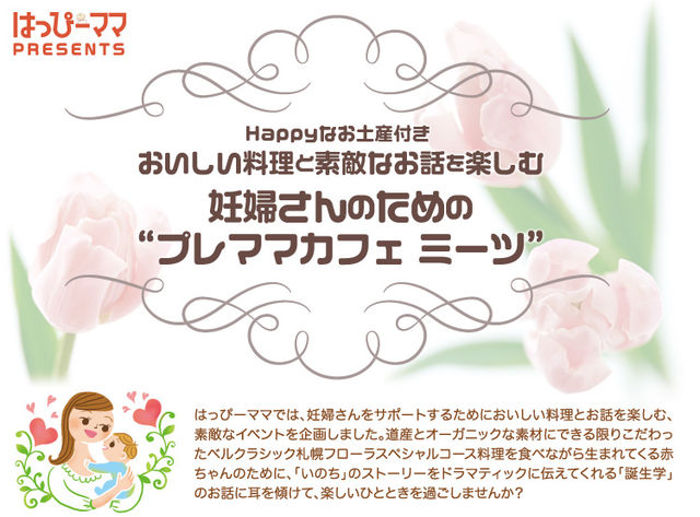 はっぴーママ企画の妊婦さんの為のイベントです。詳細はコチラからご覧ください。 http://www.ahamaga.com/ahcs/themes/ahappy_club/images/events/premamacafe01.jpg