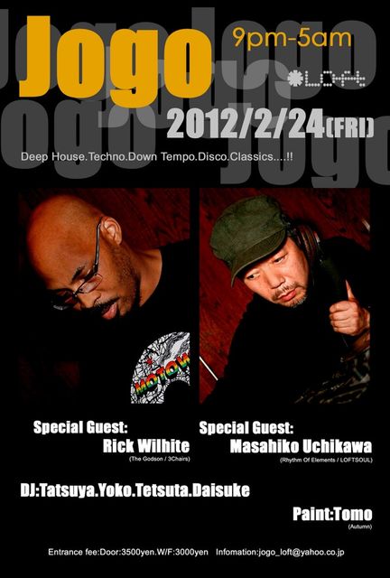 管理人様、告知失礼いたします。 3 ChairsのRick Wilhiteが上田市のLoftに来ます。 詳細は下記の通りです。 みなさんのお越しをお待ちしております。 【Jogo】 deep house,techno,down tempo,disco,classics ... etc 2月24日(金) 9pm-5am @ Loft 上田 Special Guest DJ: Rick Wilhite [The Godson / 3 Chairs] Masahiko Uchikawa [Rhythm Of Elements / LOFTSOUL] DJ:Tatsuya,Yoko,Tetsuta,Daisuke Live Paint :Tomo [Autumn] Fee:w/f 3000yen,Door 3500yen Rick Wilhite 3 Chairs(スリー