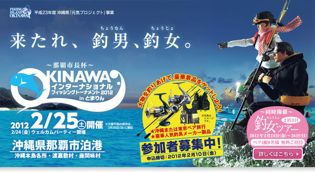 こんな格安のツアーを組めました。 興味を持たれましたら連絡下さい。 オキナワ インターナショナル フィッシングトーナメント http://www.fishingisland-okinawa.com/oift2012/ ※本ツアーに含まれる大会とは2/25開催の「ジギングバトル」です。 当店ツアーパッケージ予算について 2月24日(金) 羽田06:05、12:45、13:40、15:15発が基本 羽田20:00発は、8,000円UP。 2月26日(日) 那覇正午までと、20:50、21:10発が基本。 それ以外は、4,000円UP。