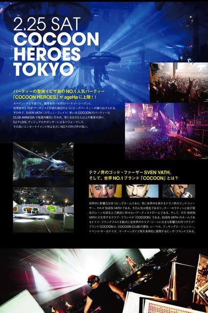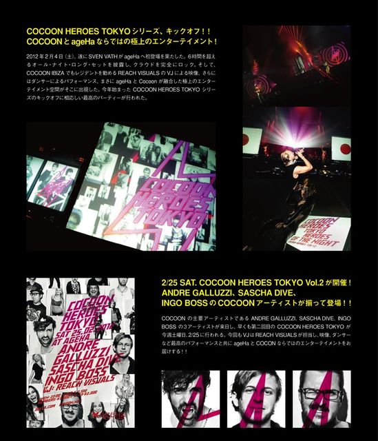 ドイツ・フランクフルトを拠点に全世界のクラブ・シーンに大きな影響力を持つクラブブランドCOCOONとageHaが強力ににタッグを組みニューパーティー「COCOON HEROES TOKYO」をスタート!