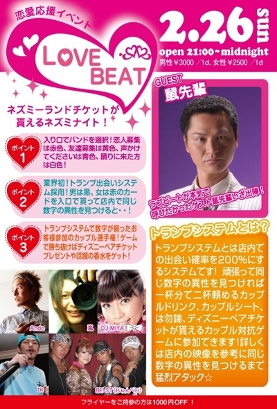 PRICE: Entrance¥2500with1DRINK(ゲスト料金1500円/1D)