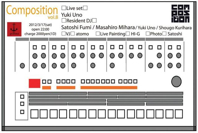 管理人様告知失礼致します。 世界が認める日本人テック・ハウスDJ/プロデューサー、Satoshi Fumiの年間レギュラーパーティー(3・6・9・12月年4回) 「 Composition 」 ※人、音、光・・・それぞれ、独自の持つ感性が響き合い、構成(Compositon)される時間/空間。 水戸発→世界をコンセプトに水戸出身で世界で活躍するSatoshi FumiをResident DJに迎え、 2010年3月に産声を上げたComposition。 2012年の一発目のCompositionは3月17日に開催決定!! 今回はオリジナル楽曲のリリースを控え、益々精力的に楽曲制作に力を入れて