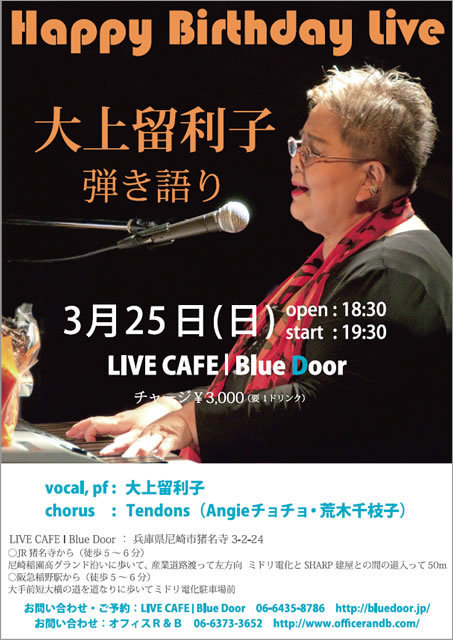 £³·î£²£µÆü¡¡LIVE CAFE /Blue Door¤Ë¤Æ¡¢»ä¤Ï¥Ô¥¢¥Î¤ÎÃÆ¤¸ì¤ê¥é¥¤¥Ö¤µ¤»¤Æ¤â¤é¤¤¤Þ¤¹¡£ OPEN £±£¸¡§£³£°¡¡START £±£¹¡§£³£° CHARGE 3,000±ß¡Ê¥É¥ê¥ó¥¯ÊÌÅÓ¡Ë¡¡ ºåµÞÄ͸ý¤Ç¾è¤ê´¹¤¨°ËðÀþ¡¢°ðÌî±Ø¤Ç¹ß¤ê¤Þ¤¹¡£JRÃö̾»û¤ÎÊý¤¬¶á¤¤¤«¤â¡£ http://www.bluedoor.jp/ ¿·¤·¤¤¥é¥¤¥Ö¥Ï¥¦¥¹¡¢¤É¤ó¤Ê¤«¤Ê¤¢¡©³Ú¤·¤ß¡£ ¤½¤·¤Æ¡¢»ä¤ÎÃÂÀ¸Æü¤ÎÁ°Æü¤Ç¡¢Aretha Franklin¤ÎÃÂÀ¸Æü¡£ »ä¤Î¡ÖHappy Birthday Live¡×¤Ç¤¹¡£Íè¤Æ¤¯¤À¤µ¤¤¤Ê¤¢¡£ ¤¿¤Ö¤óTendons¡Ê¥Á¥ç¥Á¥ç¤È¹ÓÌÚ¤µ¤ó¡Ë¤¬¥³¡¼¥é¥¹¼êÅÁ¤¤¤ËÍè¤Æ¤¯¤ì¤ë¡£ BLUE DOOR¤ÎÅÅÏÃÈֹ桢£°£¶¡Ý£¶£´£³£µ¡Ý£¸£·