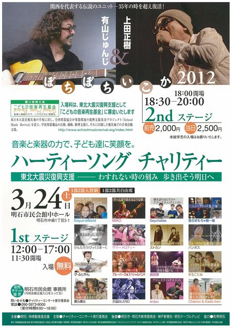 ¶â¿¹¡¡¹¬²ð Æü»þ¡§2012ǯ3·î31Æü¡ÊÅÚ¡Ë¡¡18:00 open¡¡19:00 start ÎÁ¶â¡§Á°Çä \ 3,000¡¡ÅöÆü \ 3,500¡¡¡Ê1 drink ÉÕ¡Ë ²ñ¾ì¡§¼ò¤Èºè¡¡¤³¤º¤ß¤Ã¤¯¡Ê¿À¸Í¡¦Éñ»Ò¡Ë ¡¡¡¡¡¡¡¡Tel.078-782-7263 ¡¡¡¡¡¡¡¡¿À¸Í»Ô¿â¿å¶èÉñ»ÒÂæ6-10-5¡¡Éñ»Òµ×ÊÝ¥Ó¥ë2F