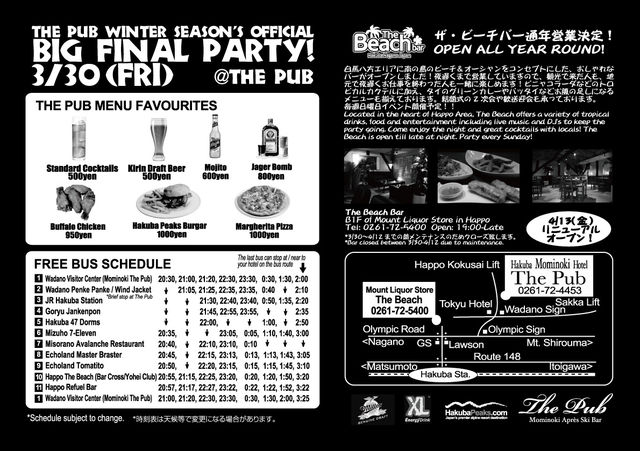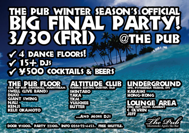 今シーズンの最後のパーティー、The Pubで弾けちゃいましょう!
