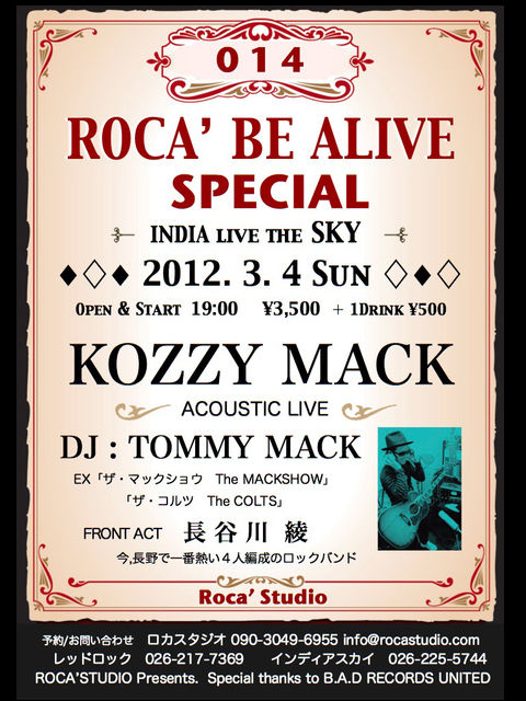 今回はなんとB.A.D RECORDS UNITEDから"KOZZY MACK"がACOUSTIC LIVEで出演
