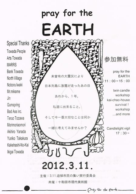 管理人様。スペースお借りして告知させて頂きます /////////////////////////////////////// 311 東日本追悼キャンドルイベント@現代美術館 のお知らせです 「東日本大震災」 未曾有の大災害により日本列島に激震が走ったあの日。 あれから、1年。 私達に出来る事。そして今一番大切なことは何か一緒に考えてみませんか? 2012.3.11.(日) 午前11時から午後7時まで 音楽・ワークショップ・キャンドルナイトと盛りだくさんな内容で 1部と2部にわけて開