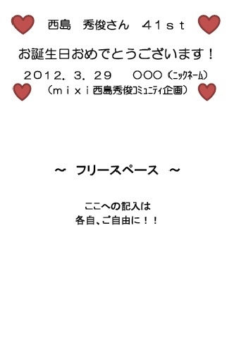 2012年03月29日 (木曜日・西島さん41歳お誕生日カード必着)