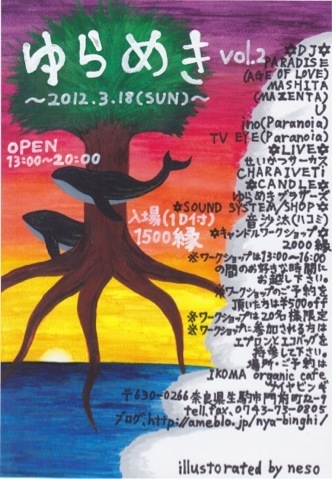 前回に引き続き「ゆらめきvo02」が開催決定しました〜〜 今回は前回よりもさらに〜グレードUPな内容になってま〜〜ス 今回のキャンドルワークショップは、廃材の紙管を使って作る簡単なスモーキーなカラーモザイクキャンドルです(画像2参考) ついに。。。 ↓↓ゆらめきコミュが出来ました〜〜↓↓ http://mixi.jp/view_community.pl?id=5921436 今回のスペシャルなLIVEは、びりびりぼんなフラワーチルドレン『せいかつサーカス』がついにゆらめきに初登場〜〜です ↓↓せいかつサーカス コミュ↓
