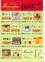 2012年3月23日で早いもので開店して10年 日頃の感謝を込めて2012年3月17日・18日の2日間 10周年感謝イベントをいたします 内容 全品2割引(デコレーションケーキは除く) イベント期間ご来店頂いた方に2012年6月末まで使える 10年変わらず愛され続けた商品の割引クーポンプレゼント みなさまのご来店お待ちしております