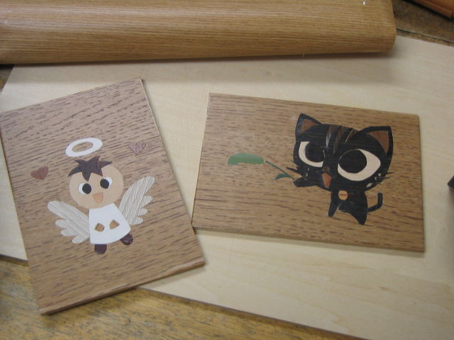 東川のクラフト街道沿いにある「相和工房」は、全国でも珍しい"木象嵌"作家である大箭利明さんの作品が並ぶギャラリーです。 「象嵌」とは、模様を「象(かたど)」り、「嵌(は)め」込むことです。 金属での象嵌が有名ですが、本体験は木の皮模様の塩ビシートや本物の木の皮を使って、その木目を「象り嵌め込む」という、全国でも珍しい木工体験クラフトです!! 木製のフレームに入る大きさに、自分で好きなデザインを下書きし、木目を付けたい部分をデザインにあわせて切り抜き、パネルに嵌め込んでいきます。 カッターとセロハンテー