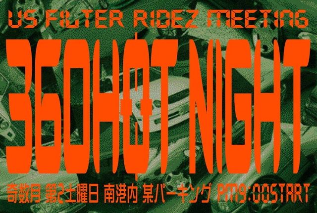 告知!! 360HOT Night 9/12 start21:00 大阪 南港有料パーキング 詳細 数年前、先駆者達が築いてくれたシーン。僕達が憧れたあのシーン。 ただ憧れて絶対こうなるぞって思って参加していた 数年後、そんなシーンも勢いがなくなってるように感じる。 何かに期待して憧れてた僕達。時が経ち、今度はそれを伝えていく側じゃないのかと思う あの憧れたシーンをもう一度。先駆者の方々へのリスペクトの意味も込めて そしてそのシーンを次世代へ。かつての僕達がそうだったように 何か僕達にできることと思い、今回企画させて頂