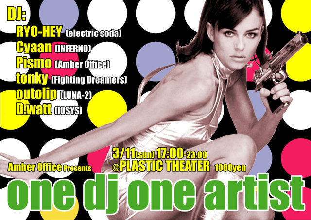 管理人様告知失礼します、不適切であれば削除願います。 1人のDJが一人のアーティストに絞った選曲をする、 "one dj one artist"という、名前そのまんま(東)のイベントをやりまーす! 札幌各所でフロアを盛り上げているDJ達が 「電気グルーヴ」「小西康陽」「筋肉少女帯」「中田ヤスタカ」担当として マニアックにプレイしますよ! 札幌で最高の音質と言われるPLASTIC THEATERで音のシャワーを浴びよう! Amber Office presents”one dj one artist" 3/11 17:00-23:00 PLASTIC THEATER 1000yen --DJ's-- tonky (