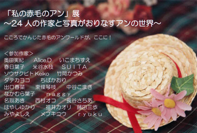 大阪のカフェギャラリー「The 14th Moon」さんで、3月14日から、赤毛のアン展をさせていただきます! 23人の作家さんとのコラボで、なかなか実現が難しい企画だと思います。 私を含めて24人の作家それぞれがイメージするアンの世界を堪能いただけます。カフェなのでお茶を飲みながらゆっくりご覧になれます。 「私の赤毛のアン」展 〜24人の作家と写真がおりなすアンの世界〜 2012年3月14日(水)〜3月23日(金)*3月18日(日)は休み 場所/カフェギャラリーThe14th moon(大阪市中央区大手通1-1-1) http://www.14thmoon.com 京