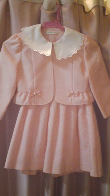 3/6編集 写真アップしたので受け付け開始します! いつもお世話になっております。 もうこんな時期ですが、娘が卒園式と入学式に使ったワンピースが出てきたので必要な方にお譲りしたいと思います。 サイズは115です。 状態は悪くありませんがユーズドなので3Nでお願いします。 ピンク地に白の水玉でジャケットの襟が白。 ゆうパック着払い(60サイズ)で送りたいと思いますが、レターパック350でも発送可能です。 ただしレターパックの場合は送料の振り込み確認後に発送しますのでご了承ください。 写真をUpするまで、栞コメントもオッケーで