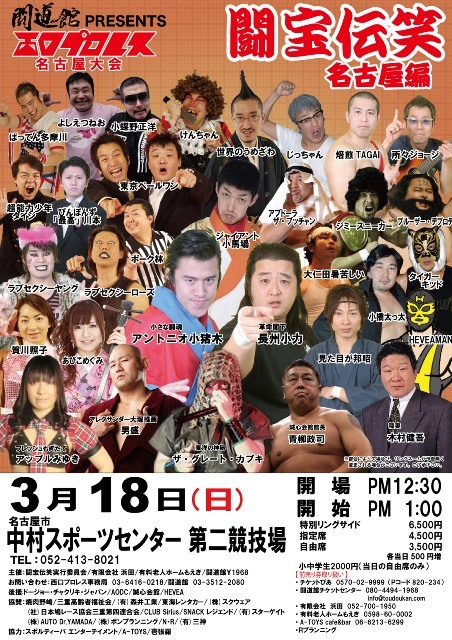 ジャイコナイトNAGOYAの第三回公演が決定しました!!!! 2012年3月18日 日曜日 「ジャイコナイトNAGOYA Vol.3」 ●会場:栄Party'z(名古屋栄) ●OPEN/START 13:00(18:00終了予定) ●DJ: マナティ はんな yosinosi ●ゲストDJ: 中村勇人(NAGO-MUGEN)) I-NiO(club solanin) ●チケット: 前売1500円 当日2000円 (全てドリンク付) *Vol.3出演者変更のお