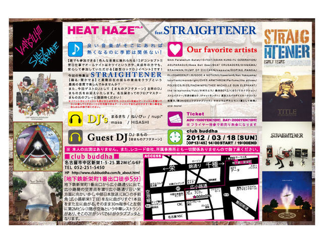 みなさんこんにちは! いかがお過ごしでしょうか? HEATHAZE年明け一発目を開催します! 今回特集はストレイテナー! ゲストには、まものアフタヌーンから主宰のDJまものが出演してくれます! 久々にゲストも入り、レジデンス陣も気合はいってます! よろしくお願いします! ------------------------------------------------------------------------ 良い音楽がそこにあれば、熱くなるのに季節は関係ない! 「誰でも参加できる!色んな音楽に触れられる!」がコンセプト!! 翌日仕事でオールナイトはキツイという方や、未成年の方で