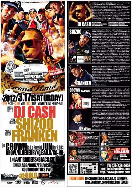 「411の取材有り!!」 【GRAND STAND】 〜HIPHOP〜 3/18(SAT)22:00 OPEN @club GOLD DJ.CROWN 「SUPERSTAR kanmuri mix」 CD RELEACE PARTY! -SPECIAL GUEST- DJ.CASH/SHIZOO/FRANKEN DJ.CROWN/DJ.JUN(RDC) DJ.BROW/DJ.Q.ban.K DJ.KO-HA/DJ.BLUEBERRY -LIVE- ANT RIDERS/BLACK KID -GOGO DANCER- NON&BARBIE -LOUNGE FLOOR- DJ.ABB/DJ.BONZ/DJ.TSUYOSHI DJ.KOUTAROU/DJ.THES TWO TICKET ADM ¥1500/1D DAY ¥2000/1D iPhoneから送信 club GOLD http://www.goldizm.com