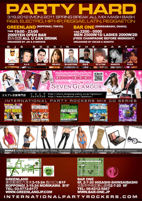 The hottest international party is goin' down in Osaka and Tokyo on the same night. Our DJs know how to rock a party. So come party with us all night long and enjoy life!!!!!
