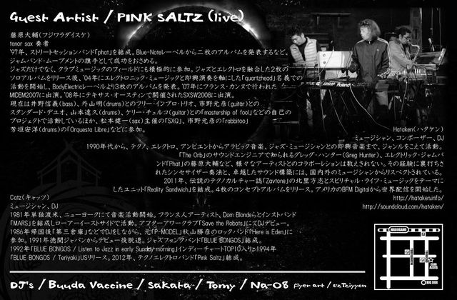 空海meeting@axis 3/24(土曜) PM10:00 0penstart~ GestArrtist/PinkeSaltz(live) DJ's/ Buuda Vaccine/SAKATA/Akiko Tomy Tomiie/Na-08 東京より PinkeSaltz がLive set を披露! 濃ゆ〜い一夜になりそうです!乞うご期待!!!