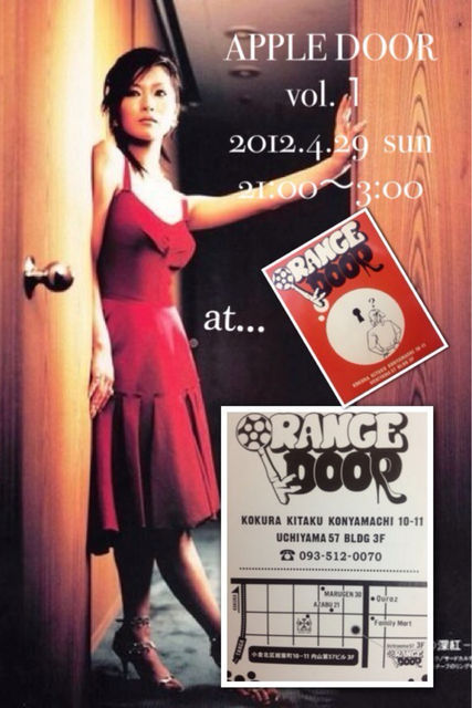 福岡・北九州の椎名林檎・東京事変愛好家の皆様!! 北九州市は小倉、椎名林檎をこよなく愛するMrs.敏腕、 KIKUMIさんのbar"ORANGE DOOR"で、お酒と椎名林檎・東京事変の音楽に酔いしれる一夜、"APPLE DOOR"を初!開催致します。 【場所】ORANGE DOOR 【住所】福岡県北九州市小倉北区紺屋町10-11 内山第57ビル 3F 【開催時間】21:00〜3:00 *参加費は要らないわ ドリンクを各自でオーダーして戴くだけ。何卒。 *開催時間内なら、何方でも、何時いらっしゃっても、お帰りになられても結構です。おこのみで。 林檎・事変中心に流れる